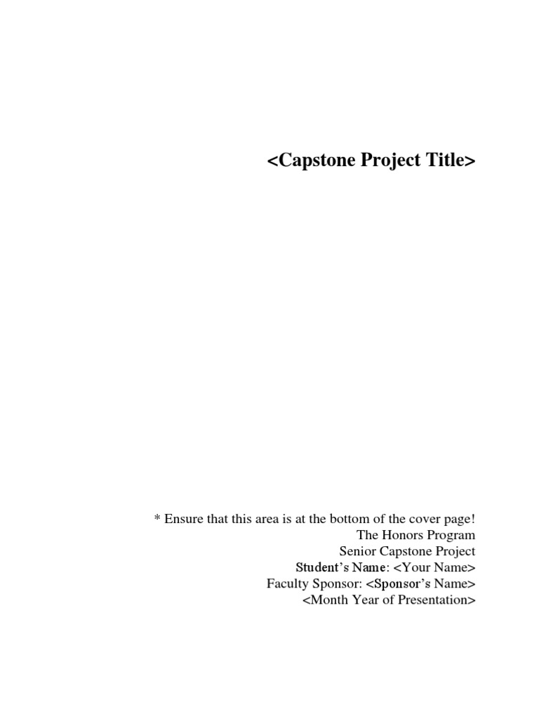 Capstone Project Template Pdf Free Download from docplayer.net O design or manufacturing costs exceeding original estimates. Wikidot offers support for what are called live templates. Western governors university teachers college. 1 inch at the top and bottom, 1 … Create account or sign in. Running head title should be 50 characters or less. Capstone title cph 470 / your name 1. (dedication is optional) capstone template 4 acknowledgements (place near center of page if acknowledgements are.